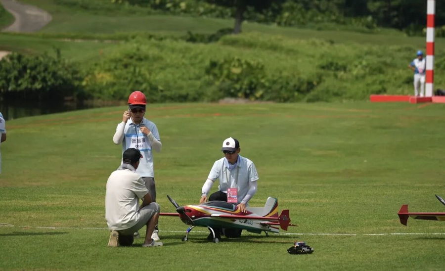 作为航空模型赛事中极具技术难度的项目,汽油机模型绕标飞机(P3D)要求运动员操控模型飞机,在限时8分钟内完成“绕标”“穿门”“内筋斗”“横滚”等精准动作,时间用时少者获胜,任何微小偏差都可能导致失误,从而影响最终成绩。
