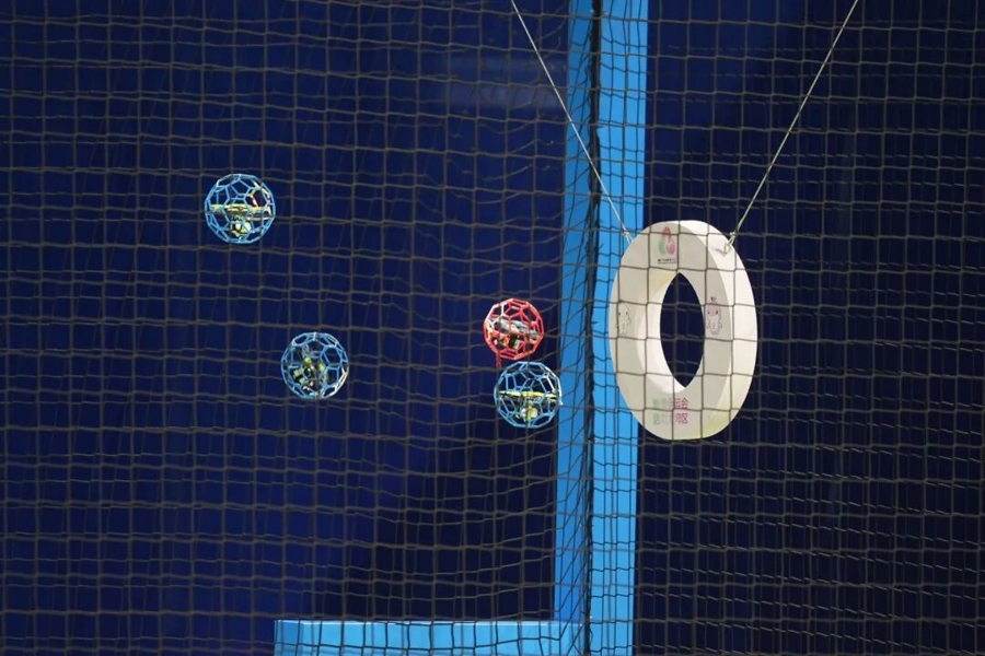 当天晚些时候进行了无人机足球(F9A-B)决赛,作为首次纳入全运会的新兴科技体育项目,无人机足球比赛分为小组赛与淘汰赛两个阶段,采用五人制红蓝对抗规则,选手需操控球形无人机突破防线,射门得分。