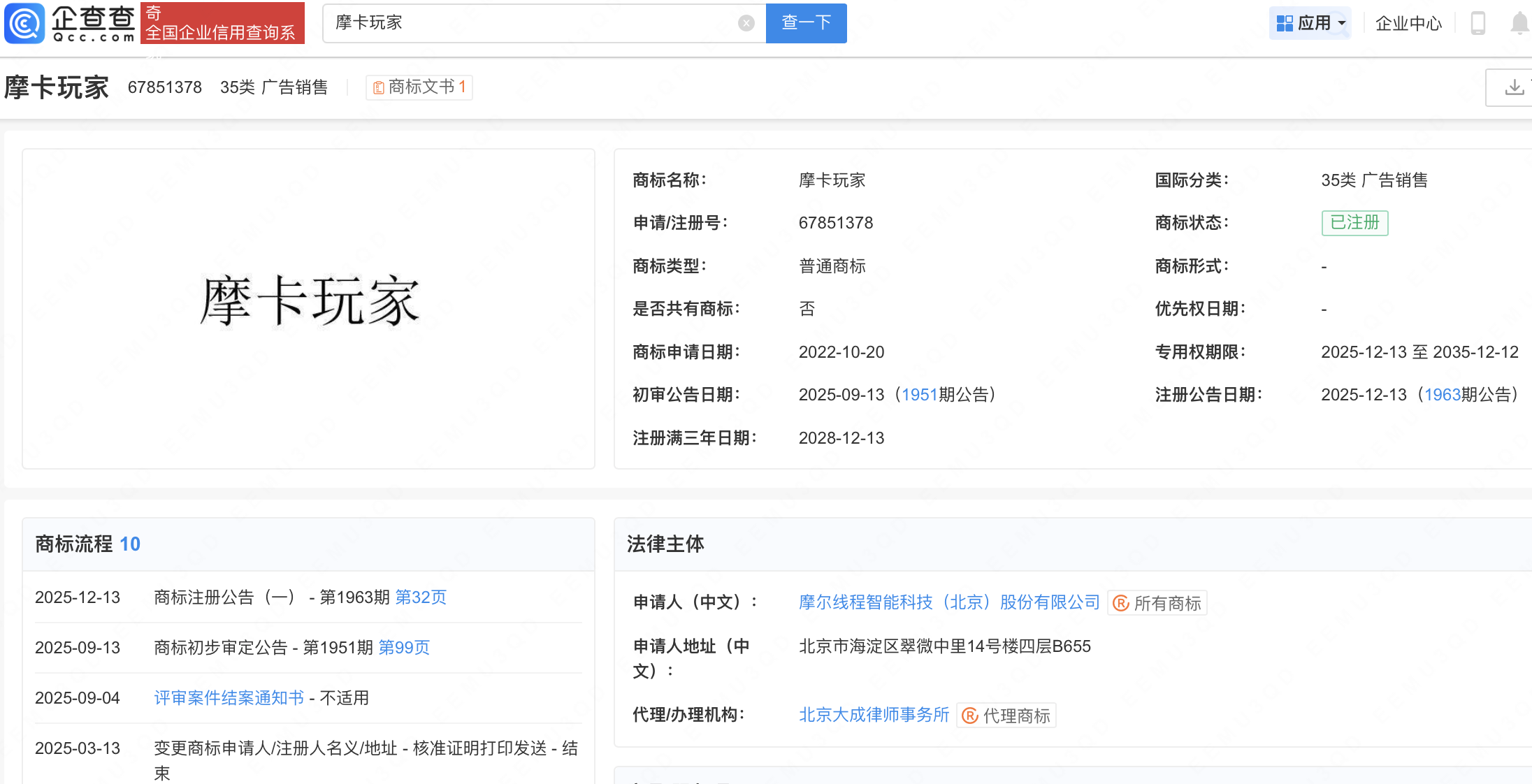 近日长宏网配资,摩尔线程(688795)成功注册1枚“摩卡玩家”商标,国际分类为广告销售。公开信息显示,摩卡玩家是摩尔线程显卡用户的一个社交平台,专注于分享产品体验和游戏乐趣。